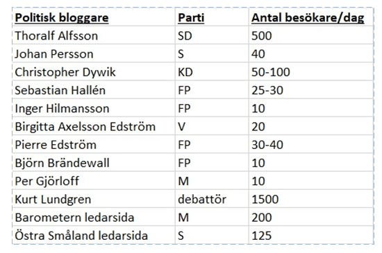 Jag hamnade på en hedrande andra plats, bara slagen av journalisten Kurt Lundgren som då var lite av en förebild och som jag hade lite kontakt med angående min blogg. Det var intressant att veta att jag hade fler besökare än tidningarnas ledarsidor tillsammans. I artikeln fick jag också lite utrymme, där man skrev följande.