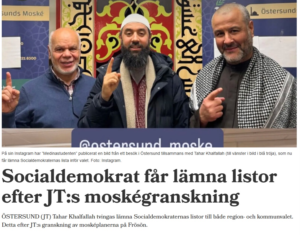 Nu tvingas det socialdemokratiska kommunalrådet ta hjälp av Säpo för att kunna utvärdera personer i föreningen och hur man samlat in pengar till moskén. En av föreningens ledande personer har nu strukits från Socialdemokraternas valsedel i Östersund sedan det blivit känt att den salafistiska organisationen ”Vi mår bra” samlat in 4 miljoner kronor till föreningen.