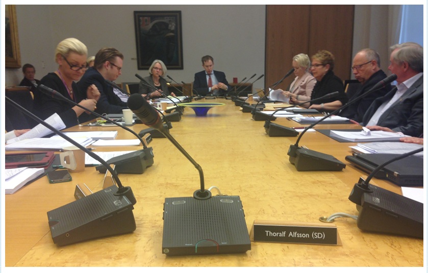 Tack vare att jag var ersättare i så många utskott och fick hoppa in som ordinarie vid utskottsmöten så träffade jag väldigt många av 7-klöverns ledamöter. Placeringen var ofta liknande i alla sessionssalar för utskotten. På ena sidan av bordet Alliansen och på den andra sidan oppositionen med sina ledamöter och sedan SD vid ena bordsänden. På min vänstra sida satt alltid först en kristdemokrat och sedan en centerpartist, på min högra sida först en vänsterpartist och sedan en miljöpartist. Den placeringen gällde i första hand de utskott som hade ovala mötesbord.