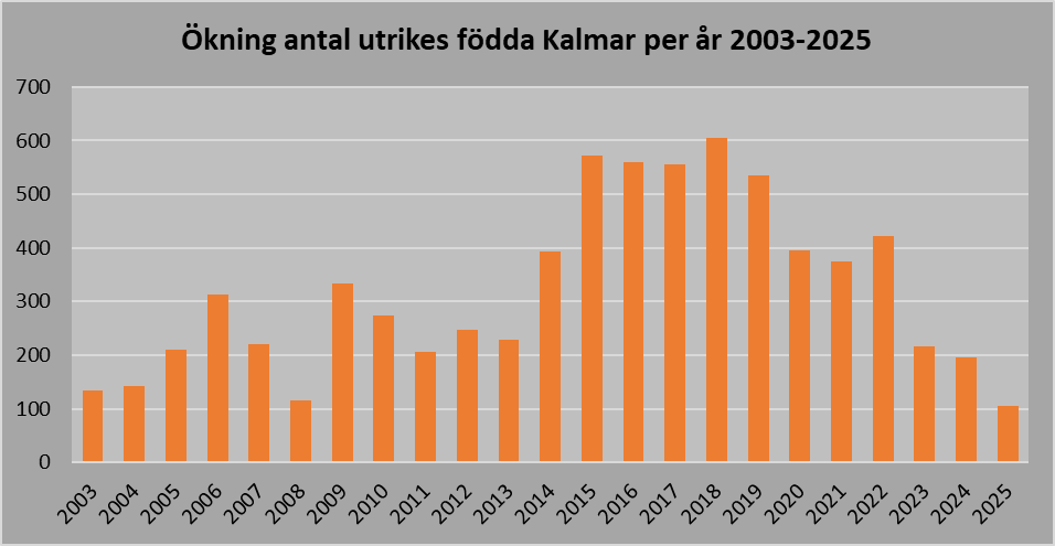 De riktigt bedrövliga åren var med Stefan Löfven och Magdalena Andersson som statsministrar under åren 2014-2022. Sedan 2022 så har antalet personer som är utrikes födda minskat kraftigt som kommit till Kalmar kommun.