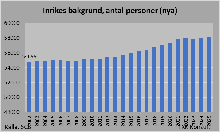 Om man backar tillbaka till 2002 så ser utvecklingen ut enligt följande för inrikes bakgrund.